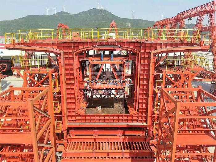 通航孔節(jié)段預(yù)制梁C2梁段高12.143M,長(zhǎng)3M,底板傾斜度10°,梁段重量270t。是國(guó)內(nèi)已完工項(xiàng)目節(jié)段最高最重的混泥土節(jié)段預(yù)制梁