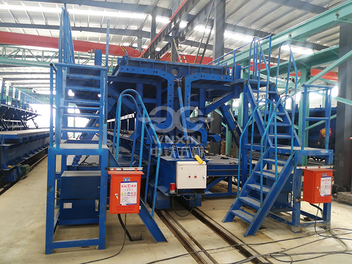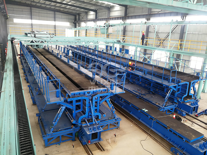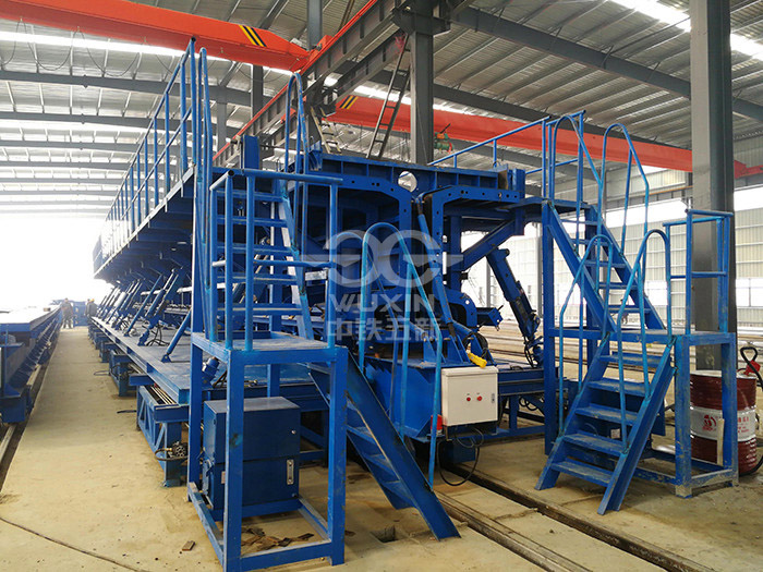 工程亮點(diǎn)或工程難點(diǎn):模板采用外模固定,底??v向電機(jī)走形,實(shí)現(xiàn)環(huán)形生產(chǎn);